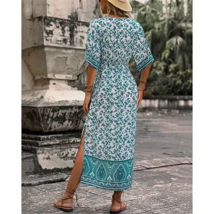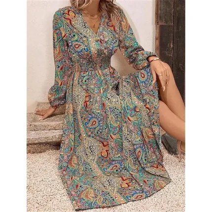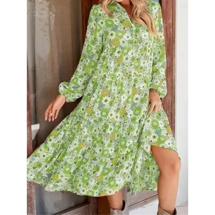 Women’s Floral Split Neck Midi Dress Long Sleeve Summer Spring 2025