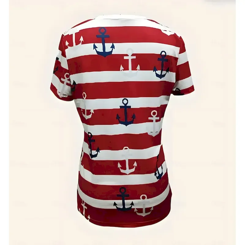 Easter-Womens-T-Shirt-Ocean-Striped-Casual-Short-Sleeve-V-Neck-Regular-Tops-Daily-Going-out-Weekend-Print-Red-Blue-Summer-2025