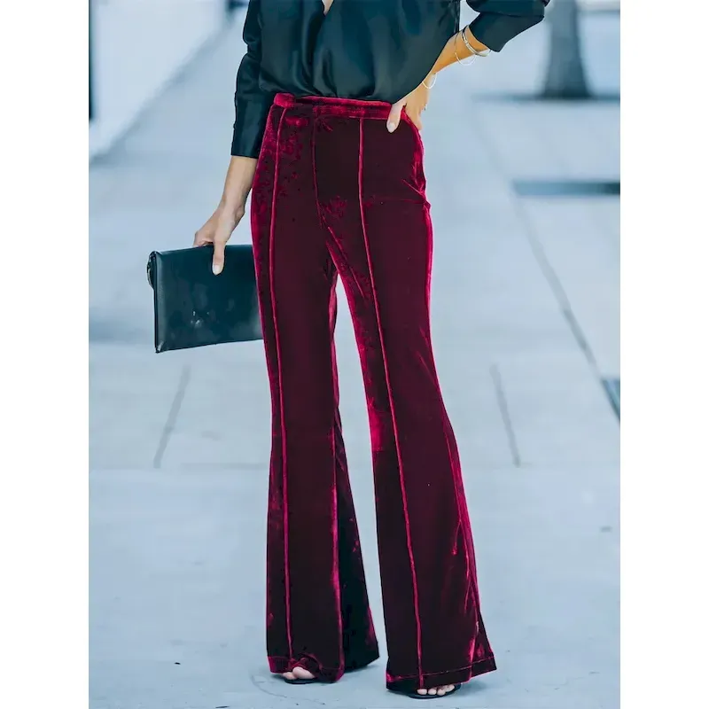 Womens-Bell-Bottom-Pants-Trousers-Elegant-Fashion-Streetwear-Full-Length-High-Waist-Plain-High-Cut-Comfort-Breathability-Soft-Microelastic-Party-Off