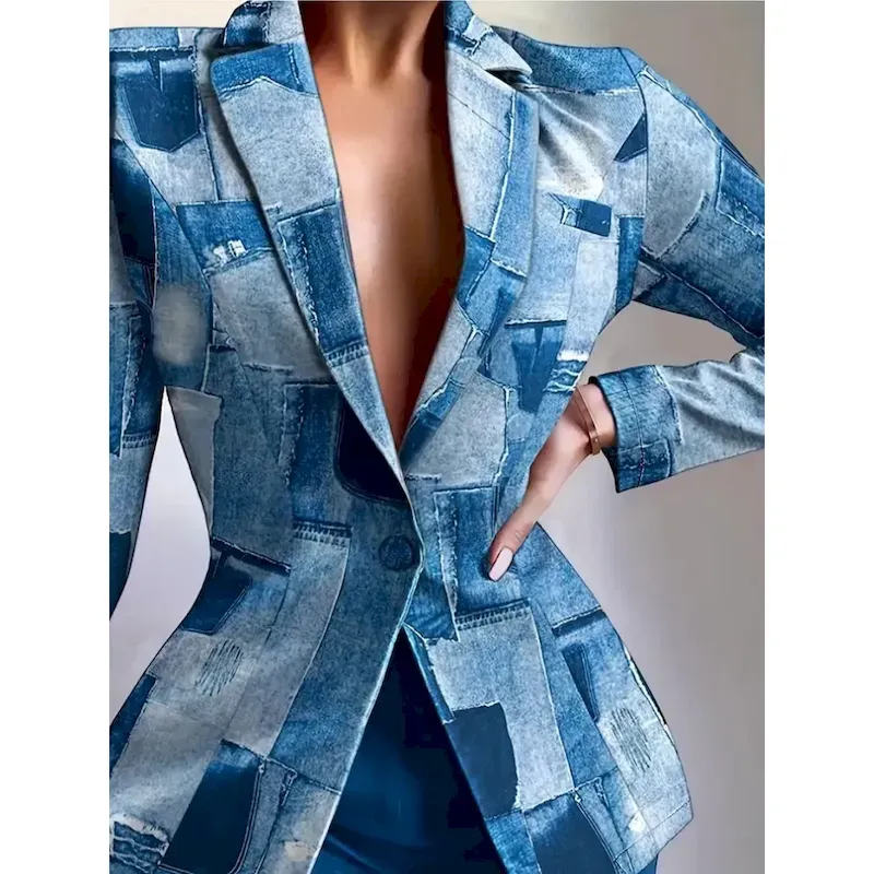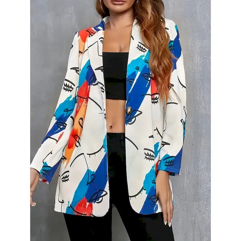Womens-Blazer-Comfortable-Breathable-Print-Casual-Geometric-Office-Street-Casual-Daily-Wear-Single-Breasted-Long-Turndown-Regular-Fit-Long-Sleeve-Out