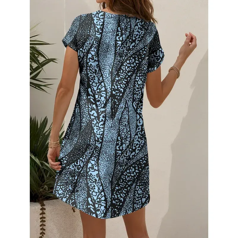 – Stunning print design– Elegant V neck neckline for a flattering look Specifications SpecificationDresses Type:Summer Dress,Sundress,T Shirt Dress Tee DressFabric:PolyesterGender:Women’sDesign:PrintOccasion:Going