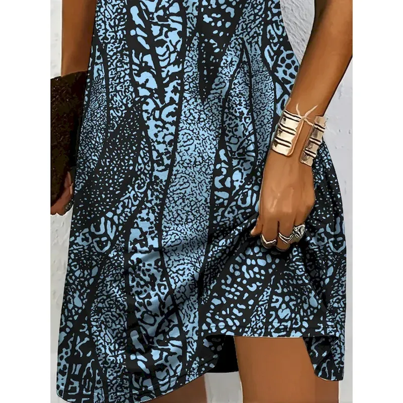 – Unique printed design– Classic crew neckline Specifications SpecificationDresses Type:Summer Dress,T Shirt Dress Tee Dress,A Line DressFabric:PolyesterGender:Women’sDesign:PrintOccasion:Holiday,BeachStyle:CasualFit Type:Regular FitDress Length