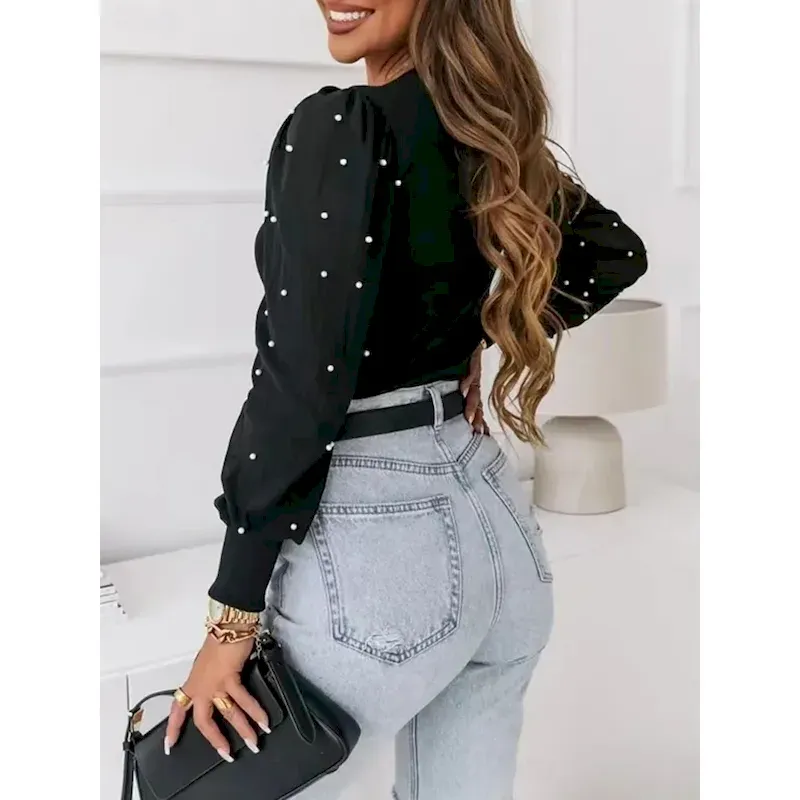 – Luxurious textured fabric– Elegant V-neck neckline Specifications Fabric:Polyester,TexturedTops Type:ShirtGender:Women’sDesign:Buttons,PatchworkOccasion:DailyStyle:Basic,CasualCategory:T-shirtFit Type:Regular FitNeckline:V NeckSleeve Length:Long SleeveElasticity:StretchyLook After Me:Hand wash,Machine washTop Length:Regular