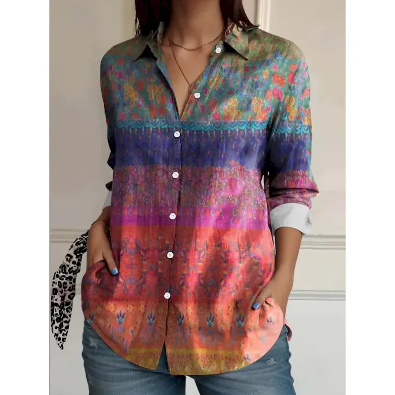Womens-Shirt-Button-Down-Tunic-Shirt-Collar-Long-Sleeve-Floral-Casual-Regular-Tops-Work-Daily-s-Print-Orange-Spring-Fall-Winter-2025