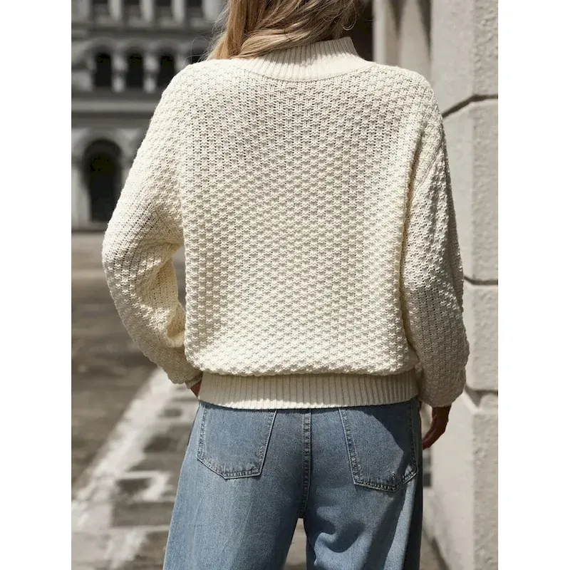 Women’s Sweater Casual Soft Solid Color Mock Neck Textured Long Sleeve Regular Tops Knit Outdoor Work Daily Black White Fall Winter 2025